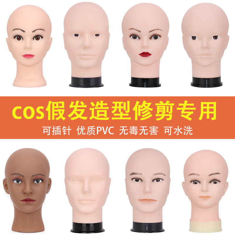 大きな頭を配置して毛を整える化粧頭型、無毛男性頭型、毛娘かつら兄弟