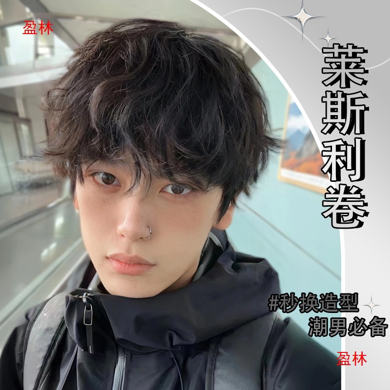 男性用かつら全頭カバー日常韓国式微分蓋ファッション短髪スタイルふわふわした自然なかつらセット
