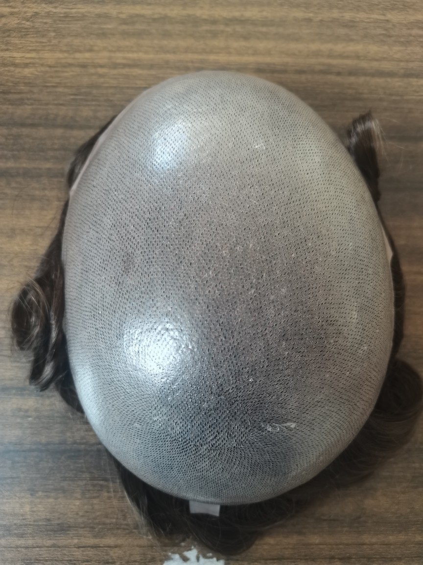 薄っぺらになって見えなくなった生物の頭皮の髪の線はすべて手で針を渡してドイツの糸の男性のかつらの頭の上をアップグレードします。