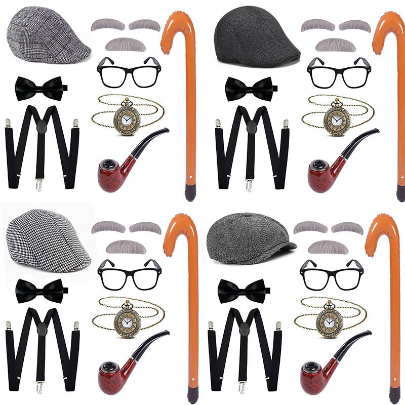 アマゾン老人服帽子cosおじいさんかつらひげ馬甲男性ビル・ゲイツ服装セット