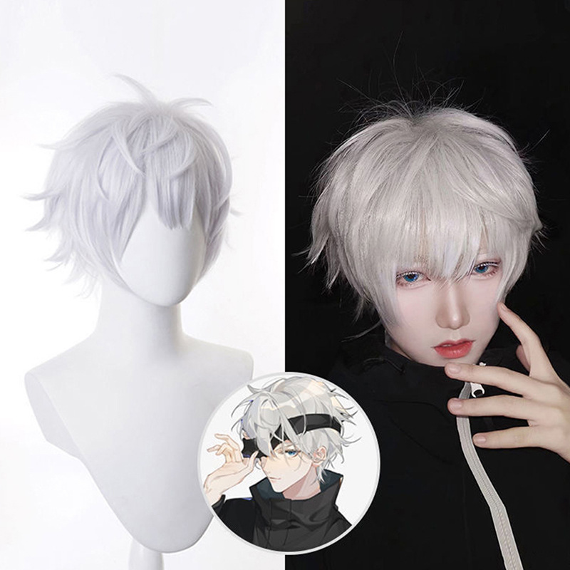 五条悟かつら白cos呪術回戦アニメ自然通気高温糸コスプレかつら男ショートヘア