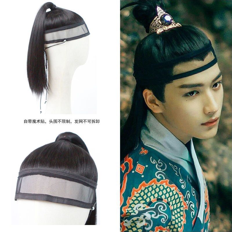古風なかつらの男性の中で長い髪の男子学生の少年感の高い馬尾の全身のカバーの男子学生の漢服の仙人の時代の服装のかつらのセット