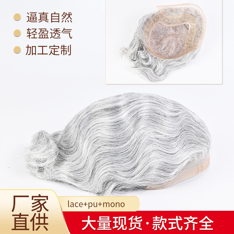 中高年かつらの花白真髪平頭短髪のかつらセット