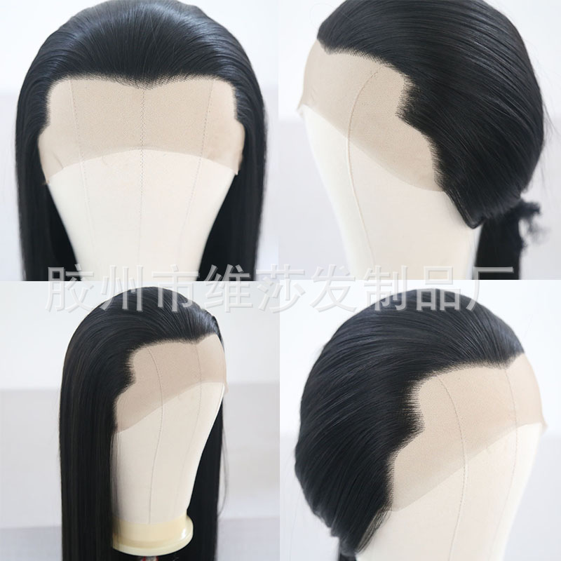 古風男かつら黒いストレート髪三尖手フックフロントレース美人尖汉服コスプレかつらカバー卸売