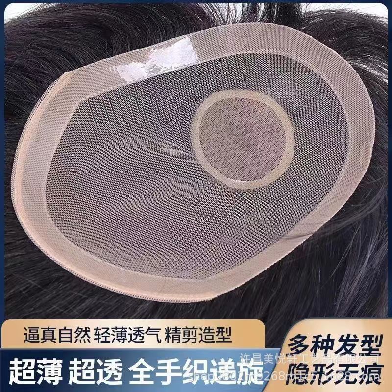 全手渡し男性の髪は本物のかつら許昌工場の全手渡し針は薄っぺらで通気性がリアルである