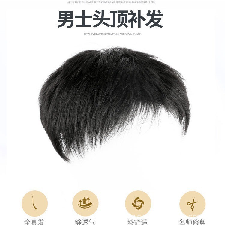 栗子頭ウィッグ メンズ ショートヘア 韓国風 人毛100% 本物の人毛 インビジブルヘアピース トップヘアピース メンズウィッグ 人毛製