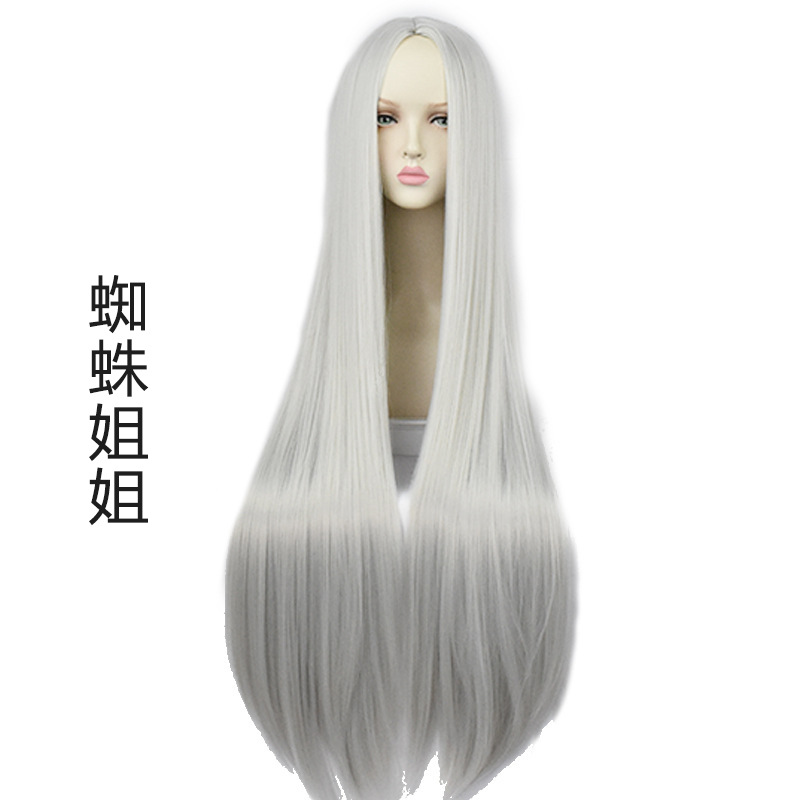 鬼滅の刃コスプレウィッグ 蜘蛛の母 蜘蛛鬼 高温耐熱シルバーホワイトロングストレートヘアスタイル 二次元
