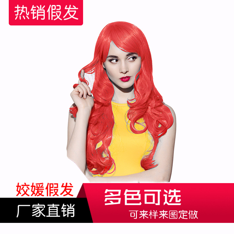 クロスボーダーのかつら欧米の女子学生の中で大きい波の長い巻き髪の大きい波の高温の糸のメーカーの卸売りの現物