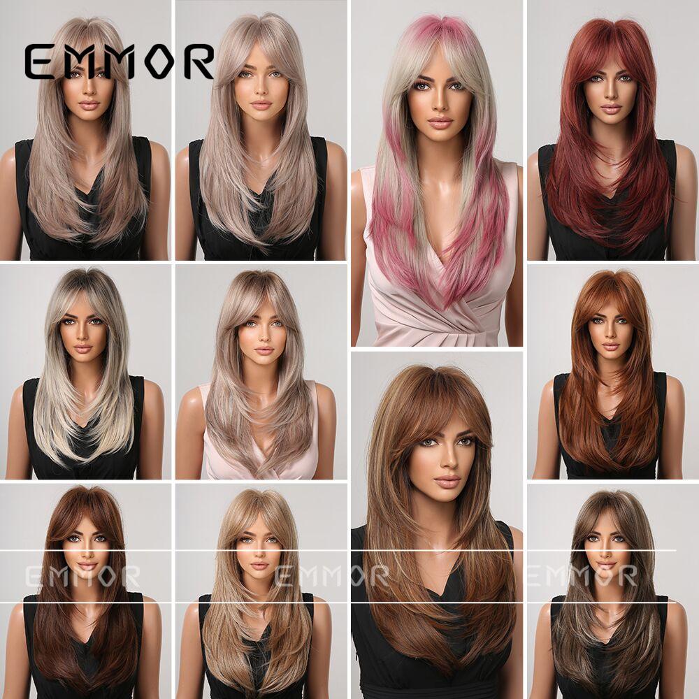 Sheinクロスボーダーグラデーション化学繊維かつら全頭カバー人気八字前髪中長直髪工場現物