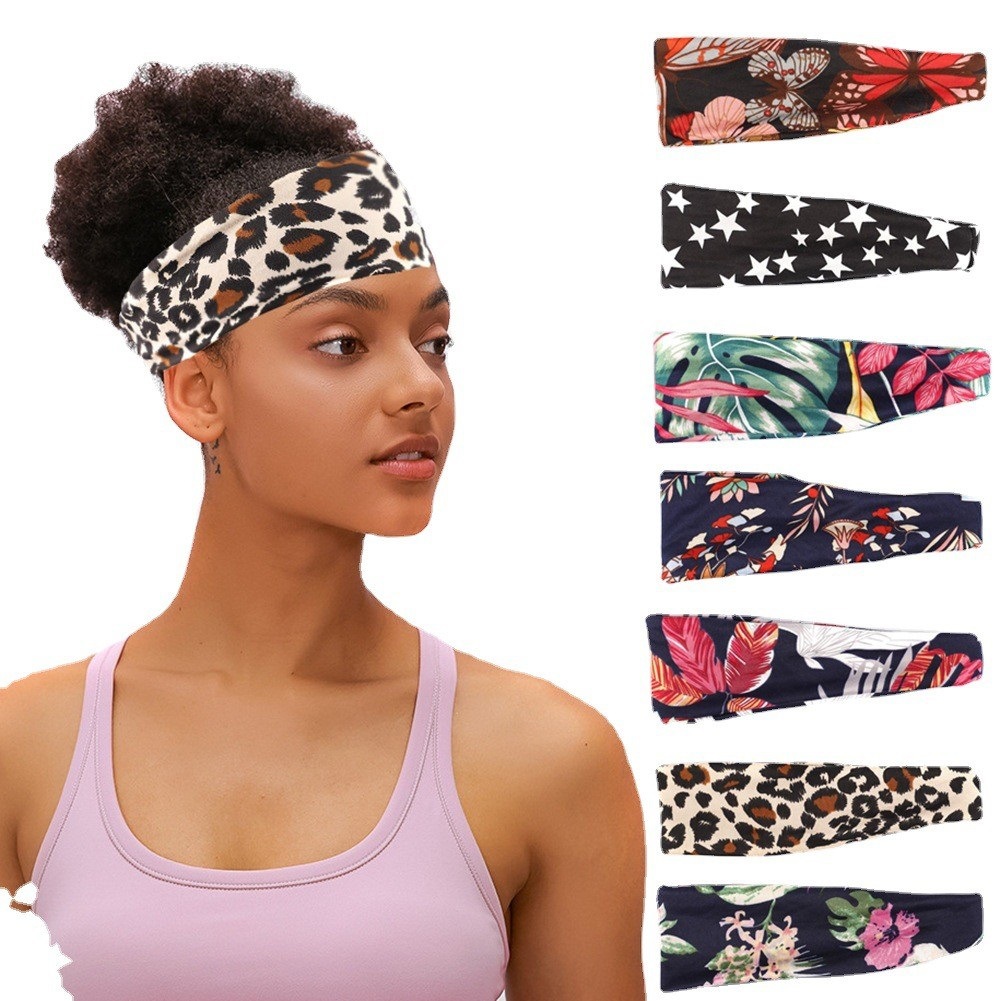 アマゾンの髪は欧米の女性のヨガのヘッドバンドのニットのスポーツのプリントの広い髪のバンドを持ちます。
