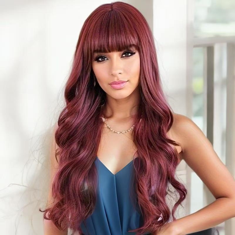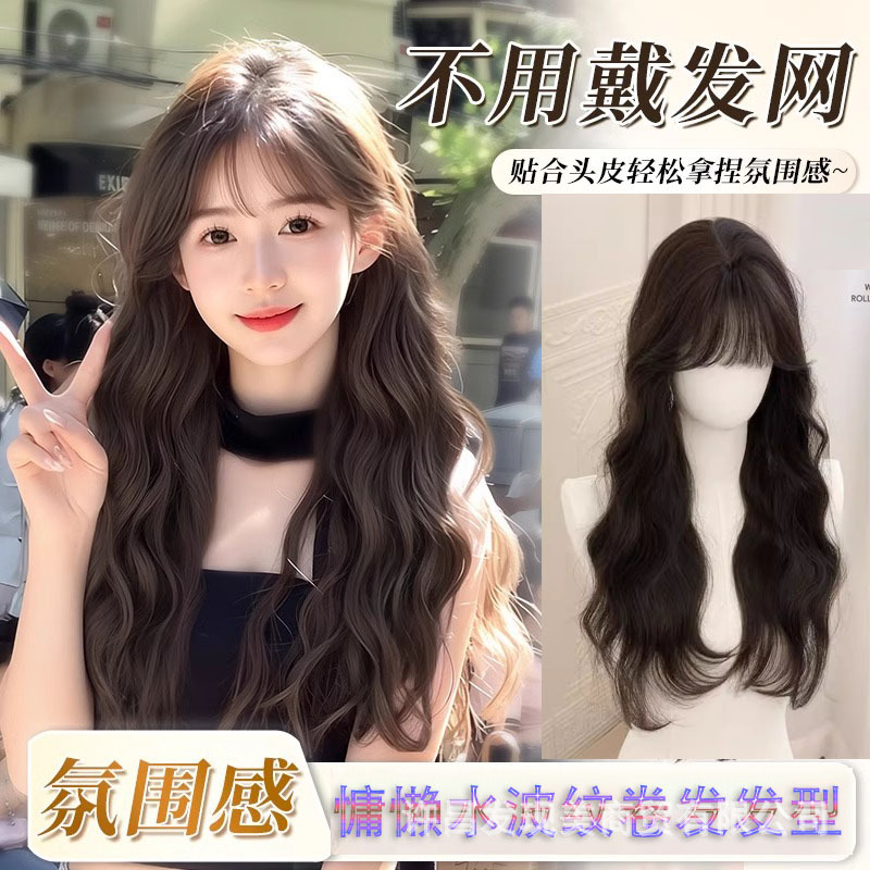 ロングヘアーの女性用ウィッグ、ファッショナブルな気質、大きなウェーブのかかった巻き毛、リアルな自然なエア前髪、巻き毛、フルヘッドギア