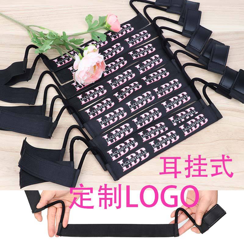 カスタムロゴ印刷付き耳掛け式調節可能ゴムバンドレースヘアバンド、カスタムロゴウィッグ