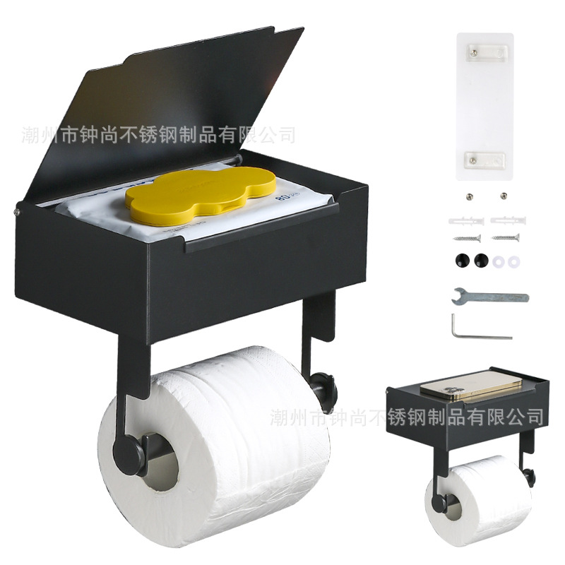 ステンレス衛生ティッシュホルダー携帯電話ホルダートイレ用トイレットペーパーボックス
