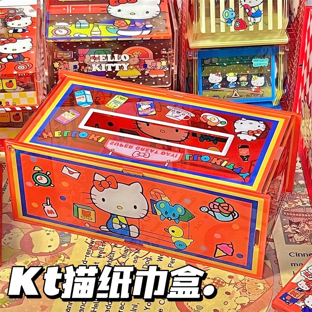 かわいいハローキティティッシュボックス大容量アクリルカバーデスクトップ防塵kt猫少女心収納ボックス