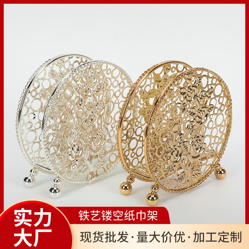 メーカー現物縦型鉄芸ティッシュ棚デスクトップナプキン棚金属円形透かし彫りレストラン収納ナプキン棚