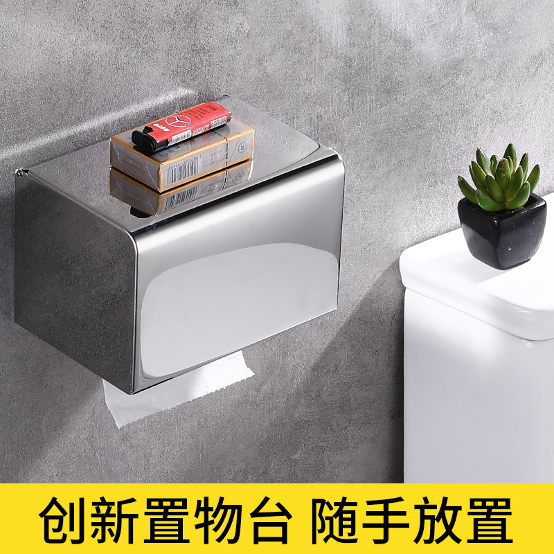 穴を開けない304ステンレスティッシュボックストイレ防水ロール紙箱の縁に手を傷つけない浴室の厚い紙箱