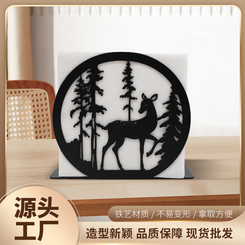 クリエイティブ鉄芸ティッシュ棚工業風デスクトップナプキン棚黒色鉄芸ニホンジカ縦型装飾ナプキン棚