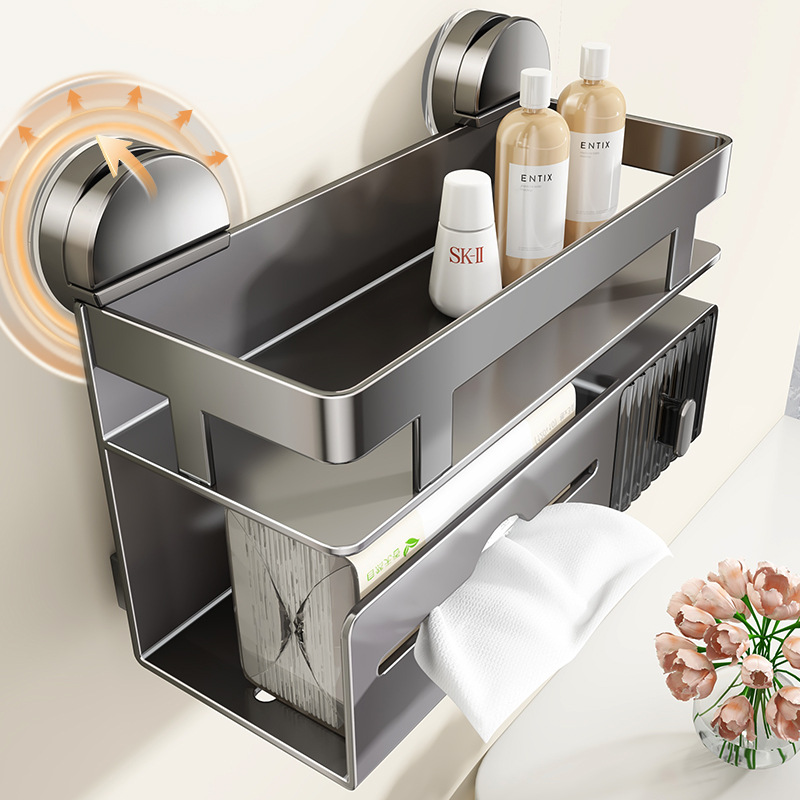 吸盤バスルームティッシュボックス壁掛けパンチフリートイレットペーパーボックスバスルームフェイスタオル収納ラックロールペーパーラック