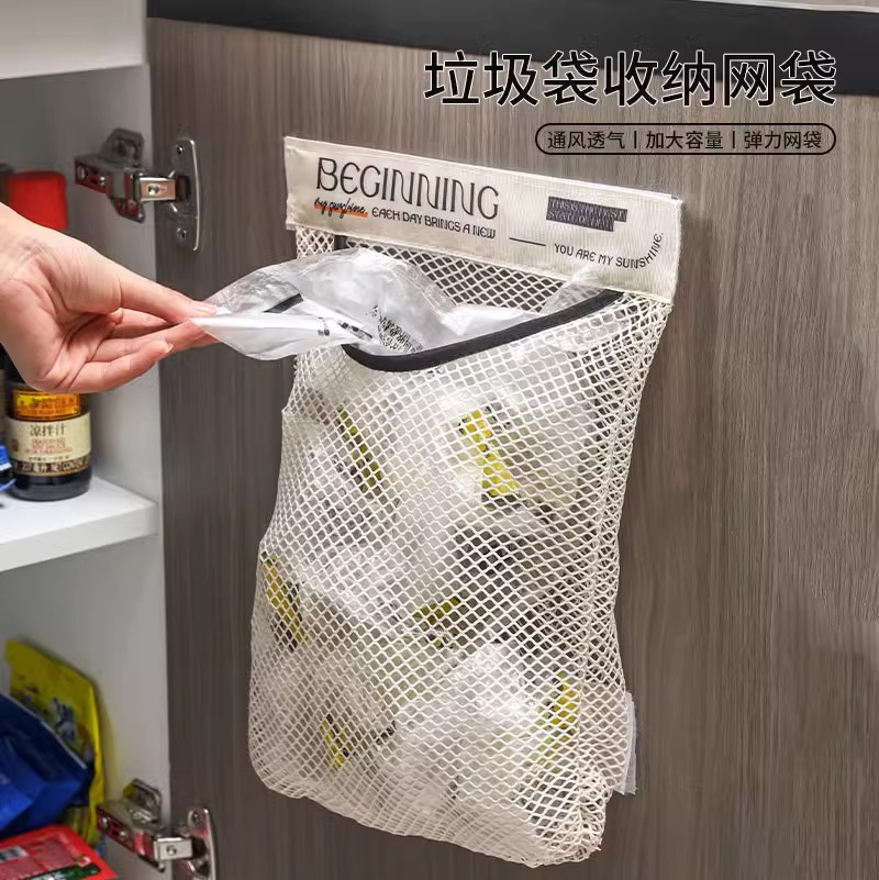 キッチン壁掛け多機能果物と野菜の吊り下げ袋ゴミ袋収納ニンニク生姜ニンニクベルクロメッシュバッグ