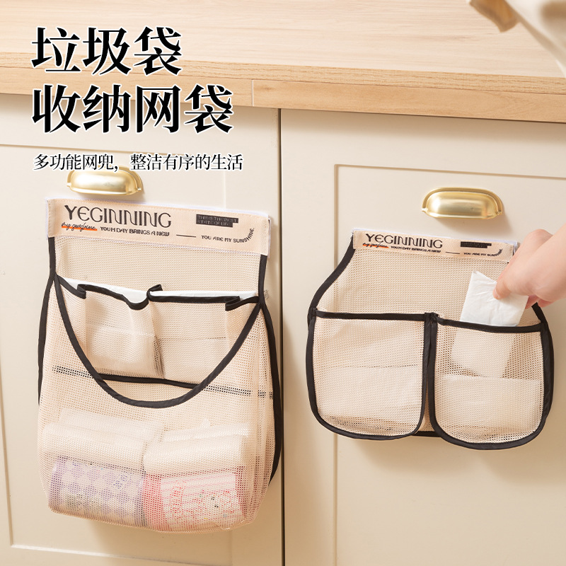 ベルクロメッシュ収納袋多機能メッシュバッグキッチンゴミ袋アーティファクト壁掛け大容量収納袋