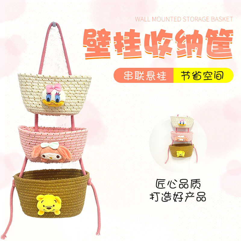 漫画三層ハンギングバスケット収納ハンギングバッグ立体リビングルーム玄関ホール整理雑貨スナック壁掛け折りたたみ収納ハンギングバッグ