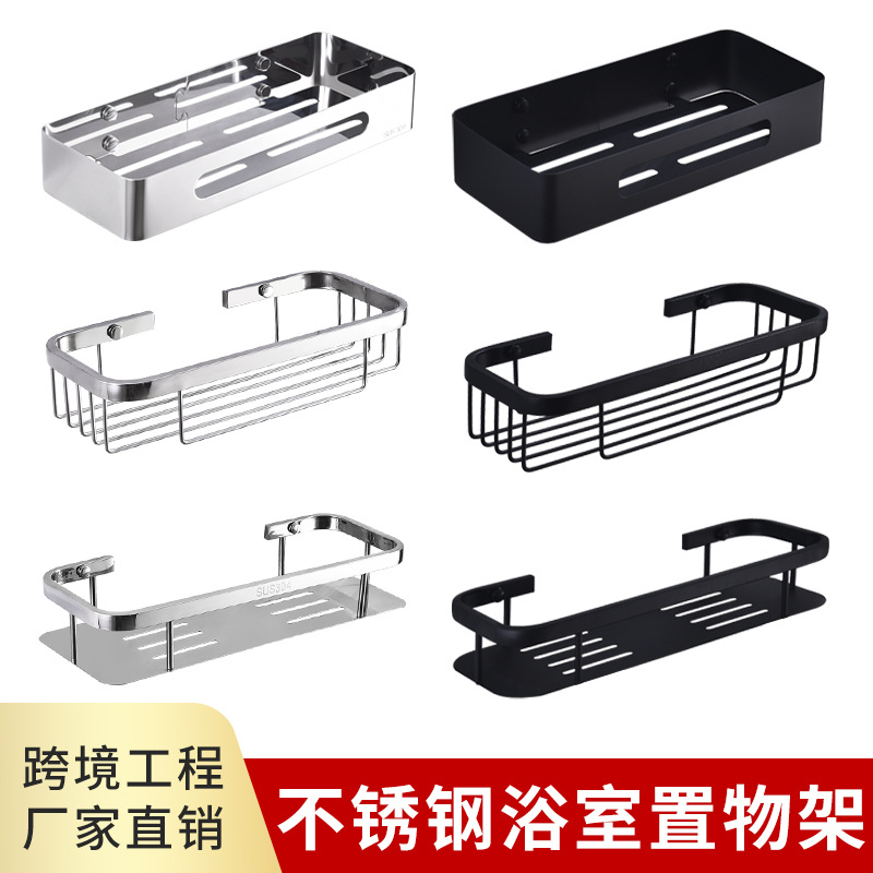 卸売り浴室棚ホテル工事トイレ長方形304ステンレス石鹸棚穴なし黒色
