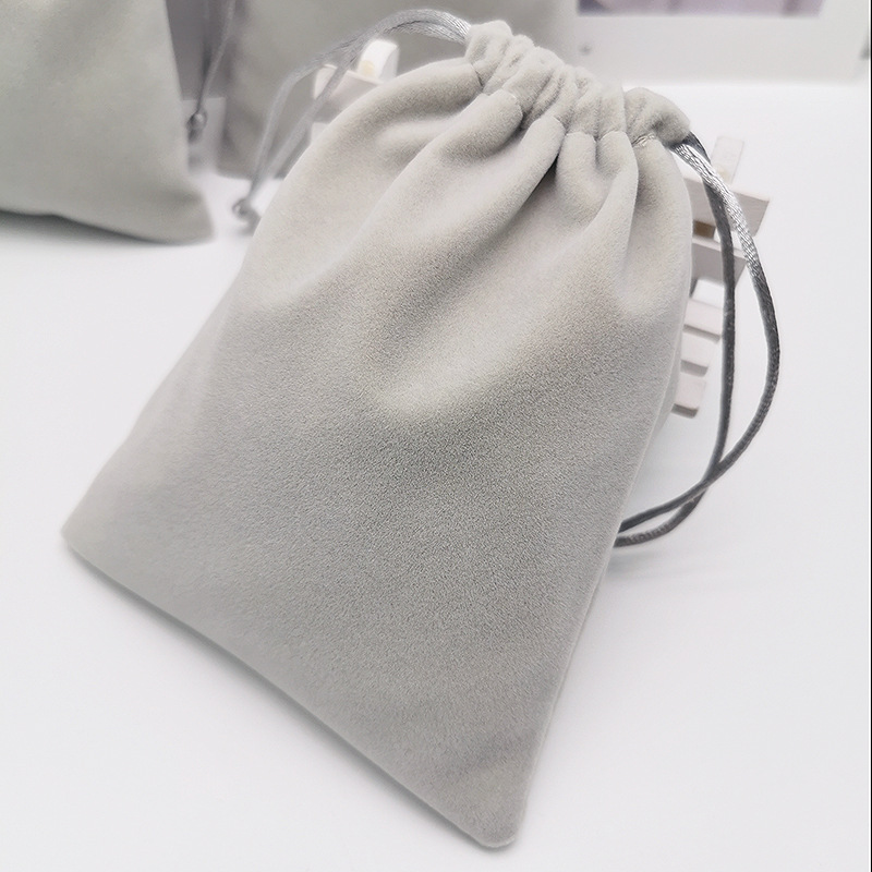 在庫あり グレー鹿革風ベルベットバッグ モバイルバッテリー用ベルベットバッグ ハンドウォーマー用ベルベットバッグ Bluetoothイヤホン用ベルベットバッグ