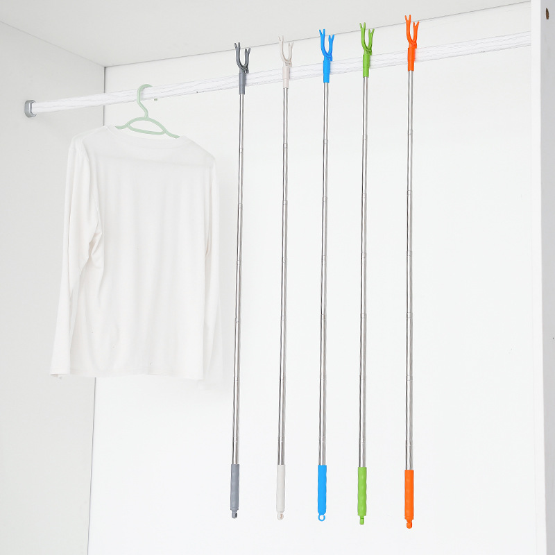 024伸縮服とフォークのプラスチックヘッドの伸縮棒とフォークの洗濯棒のサポート棒とベランダの洗濯棒と家庭用の服取り棒