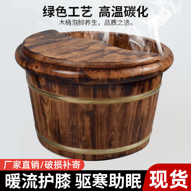 蓋付き高無垢材丸縁足湯桶、足湯桶、厚みのある燻蒸桶、足湯桶、家庭用足湯店