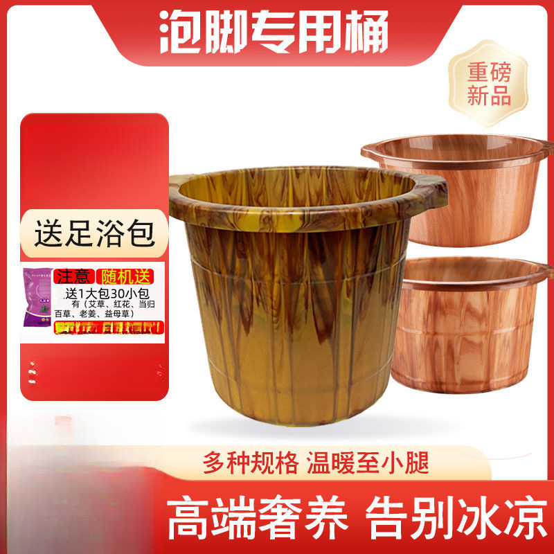 新しいプラスチック模造木樽足湯バケツ極厚足湯家庭用健康マッサージ足