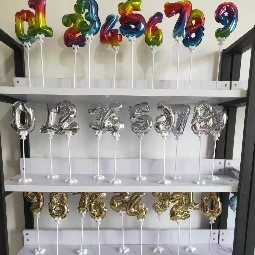 5インチ風船蝶結び棒10インチデジタルアルミ膜風船テーブルが誕生日パーティーに飾られている