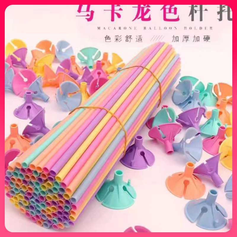 バルーン牽引プラスチックアクセサリーマカロンカラーラテックス牽引ロッド、イベント用手持ち牽引ロッド、伸縮ロッド、パーティーデコレーション