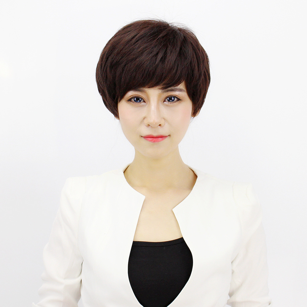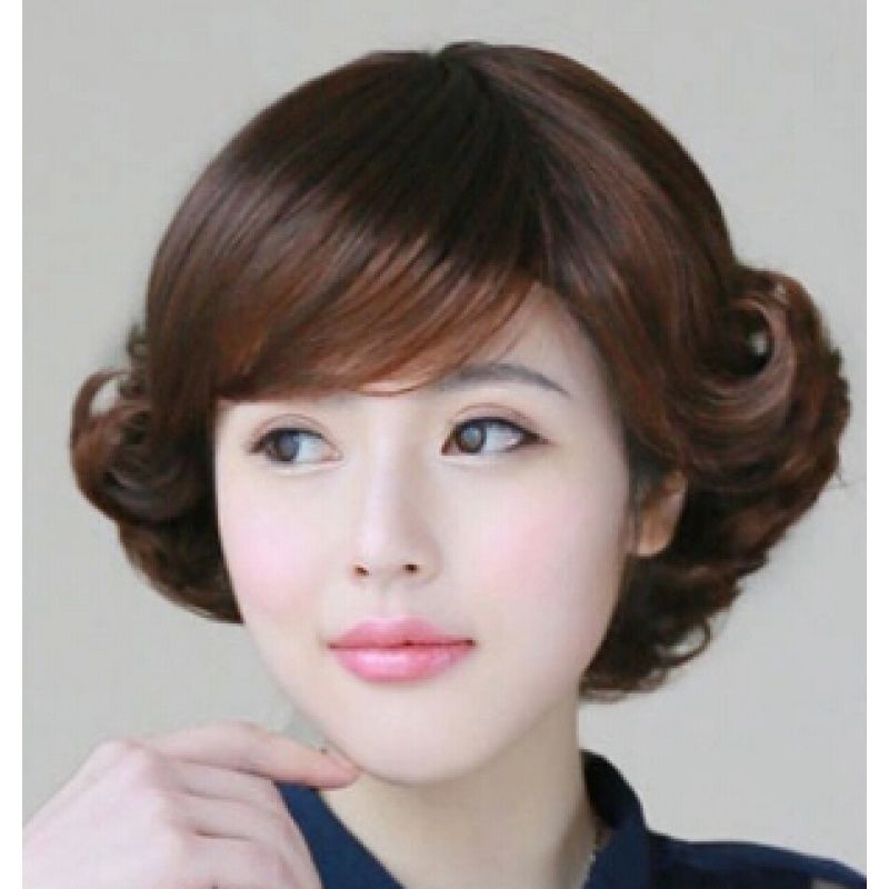 かつらの女性のショートヘアのファッション的なお母さんの木目のパーマの髪がふわふわしています。