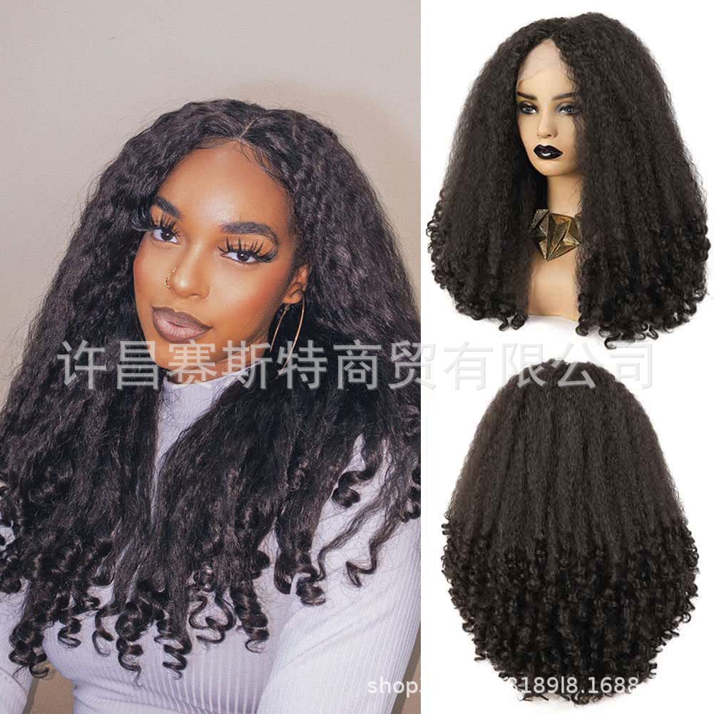 クロスボーダー欧米ファッションかつら化繊高温糸黒巻き髪斜め前髪波巻き髪ふわふわ顔