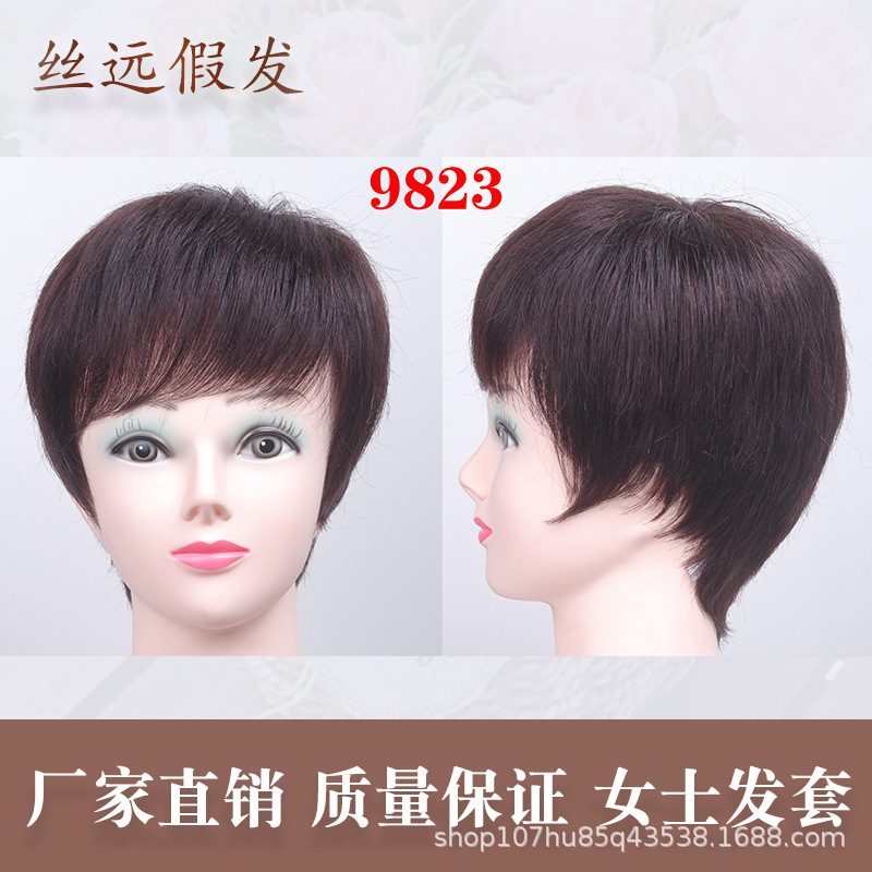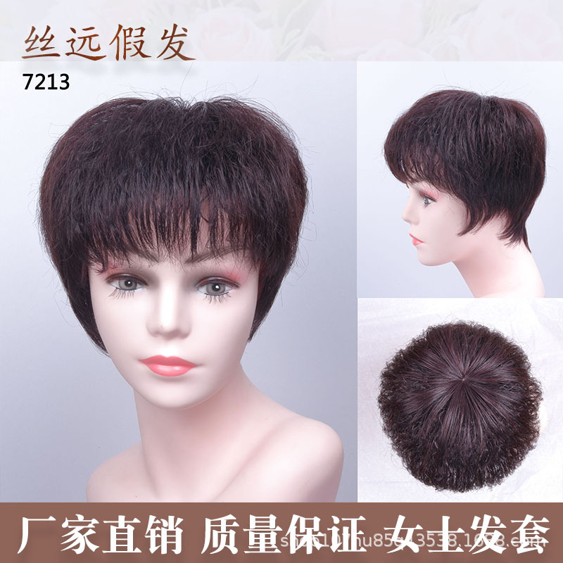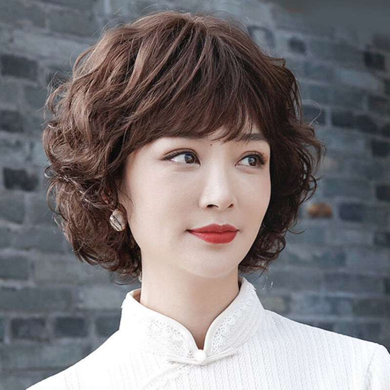 カツラのショートヘアの女性カツラの本当の髪の全人の髪の短い巻き髪の民国風の女性の中高年のお母さんのカツラのカバー