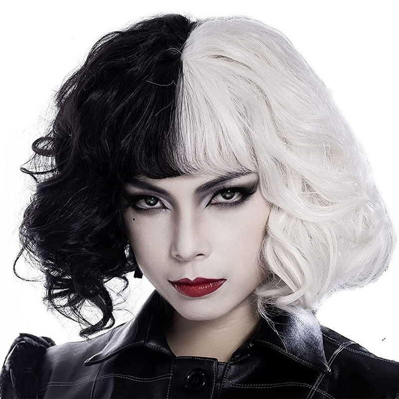 クロスボーダーの人気商品クイラかつら白黒の魔女クイラ同タイプの2色の短い巻き髪は全体のカバーを整えます。