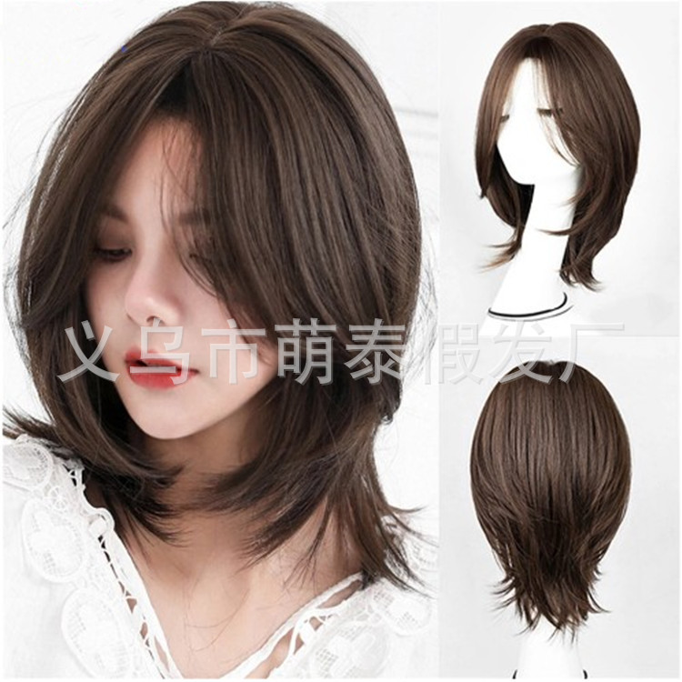 国境を越えた新製品欧米のかつら女短巻き化繊中分小巻きかつらカバーメーカー卸売りwigs