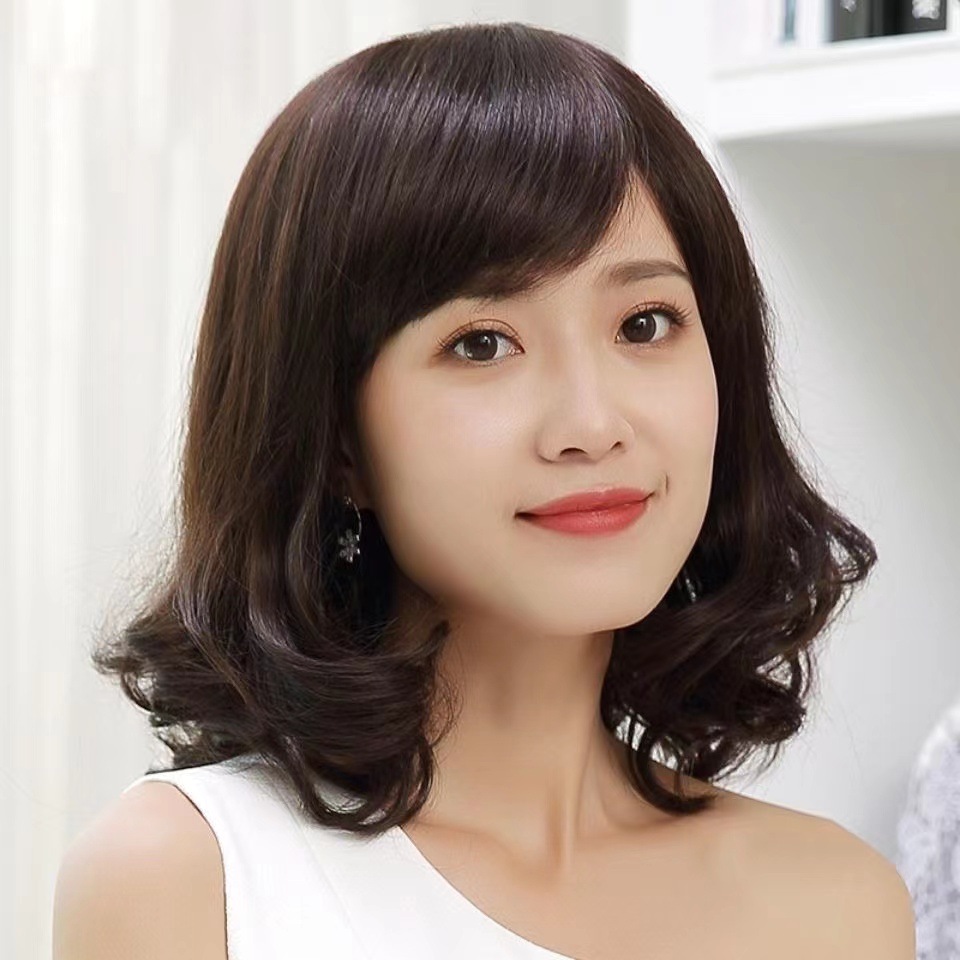 ウール巻きショートヘアかつら女性ナチュラルヘッドカバーショートカール造形減齢中ロングヘア鎖骨髪型かつらカバー