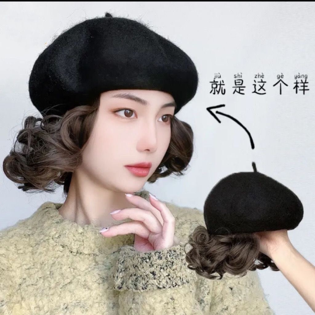 帽子のかつらの一体のファッションの女性の秋冬のベレーの帽子の新型のシミュレーションの短いカールのかつらの自然なリアルなかつらの帽子