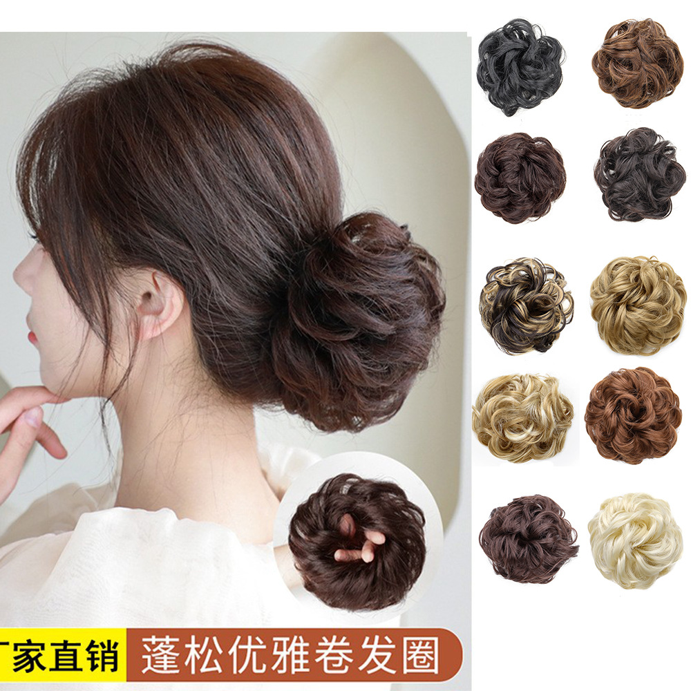 ウィッグヘアゴム丸子ヘアカーリーシニヨンヘアアクセサリー高温耐熱シルク製ロングカールヘア