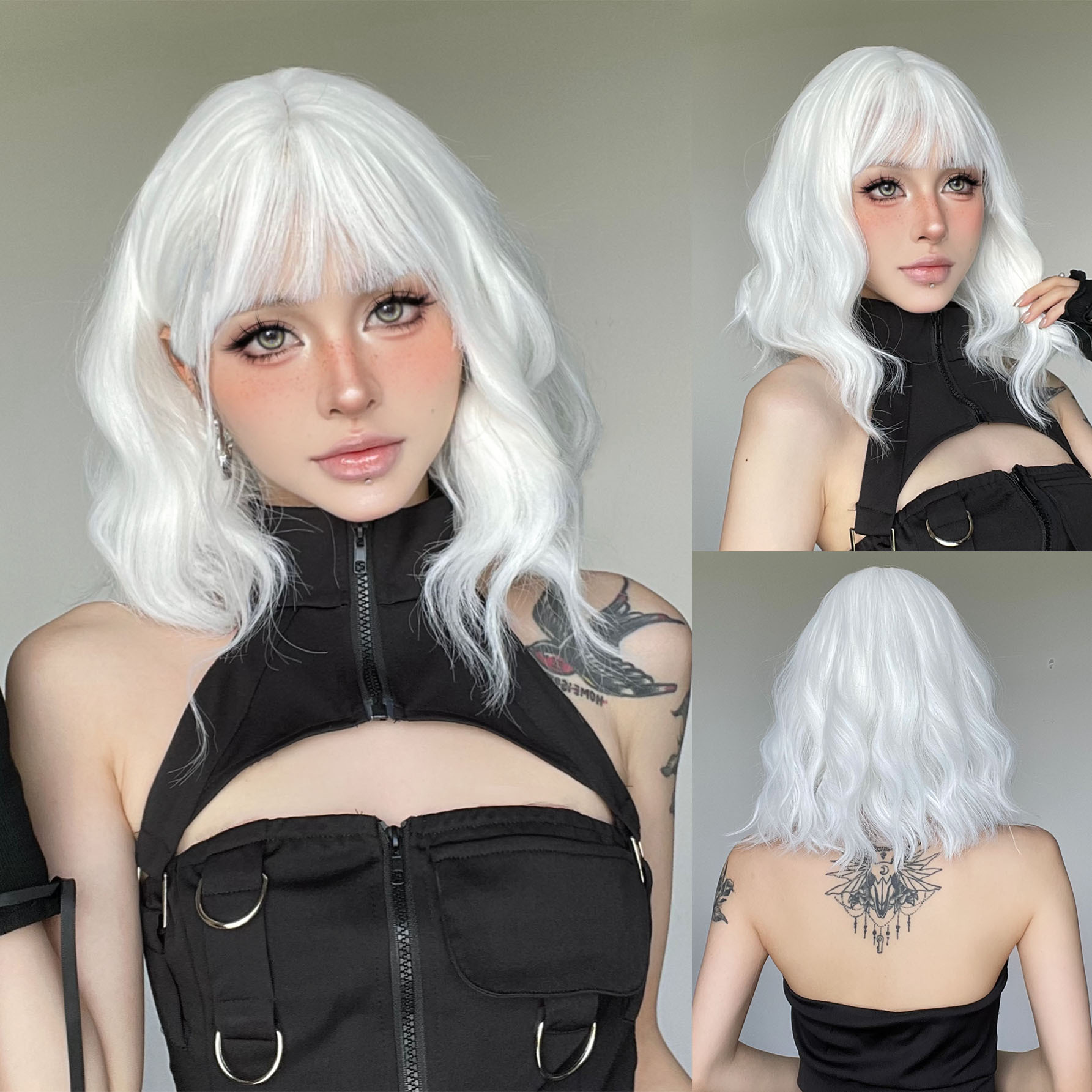 ウィッグ ショートカーリー ウォーターリップル エッグロール ホワイト フルヘッド ショートカーリーヘア ロリータ デイリー シミュレーション ウィッグ セット 在庫あり