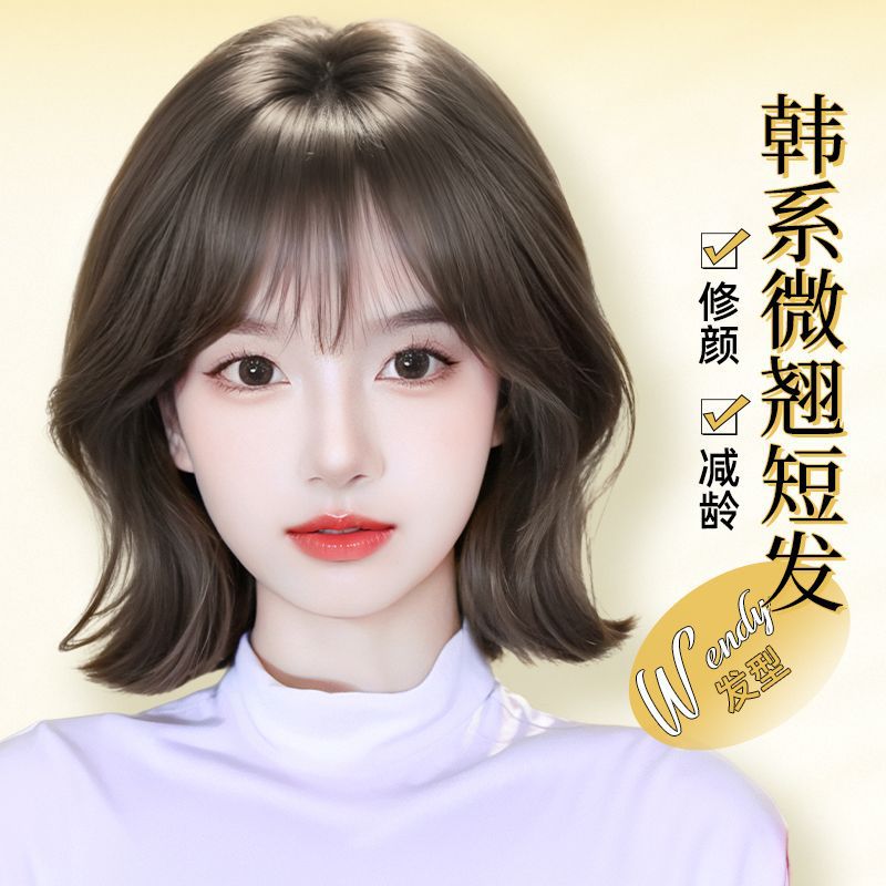 海苔ミ同タイプのかつら女性ショートヘアの短い巻き髪は自然に全部前髪Lolita日常微巻JK全頭カバー式です。