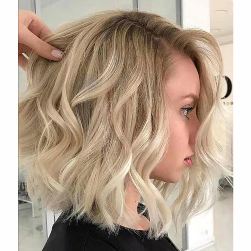 クロスボーダーヨーロッパとアメリカの女性用ウィッグ斜め前髪ショートカーリーヘアふわふわ化学繊維ヘッドギア女性ライトブロンドショートヘア合成かつら