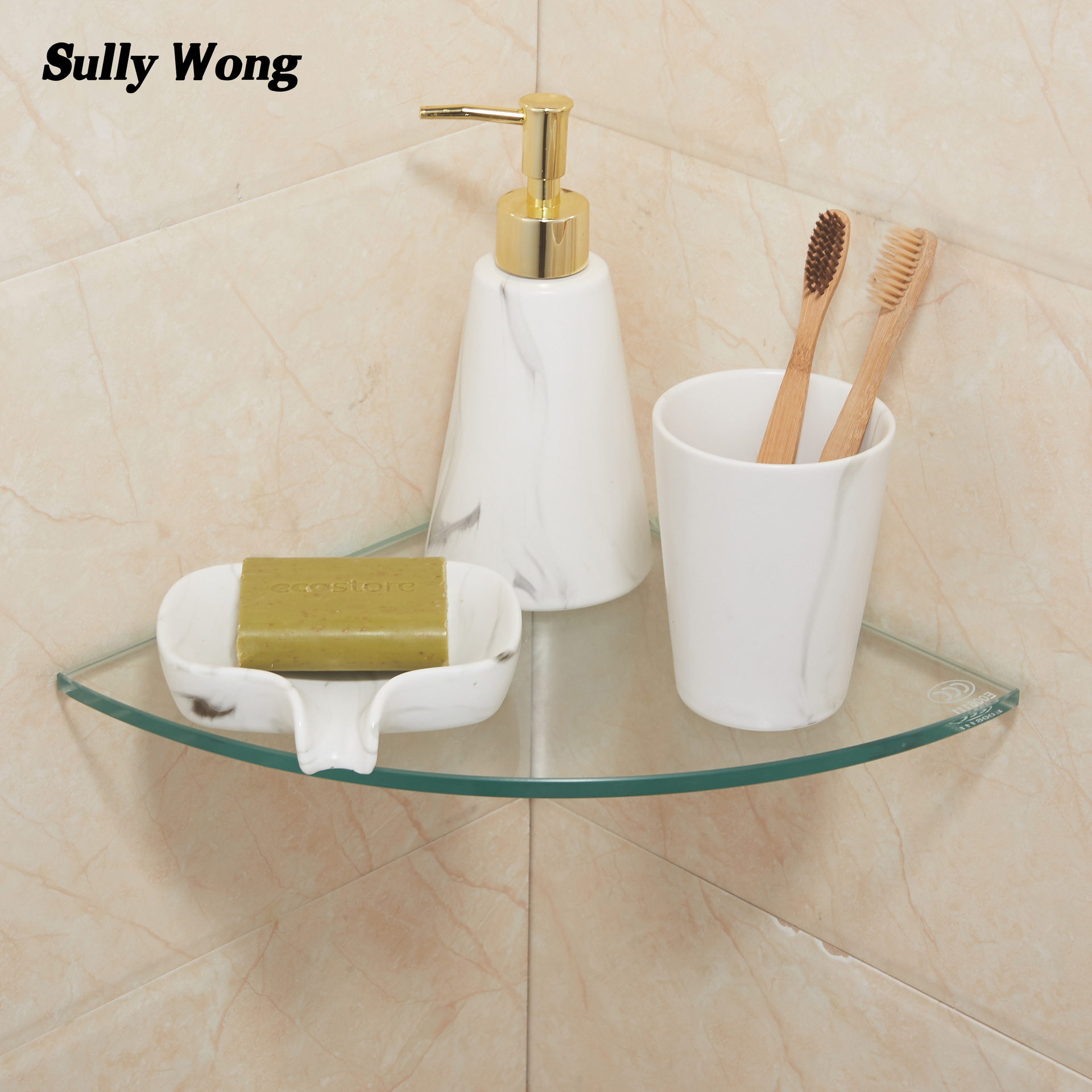 国境を越えたトイレ浴室シャワー室20/24/30cm扇形コーナー三角強化ガラス棚