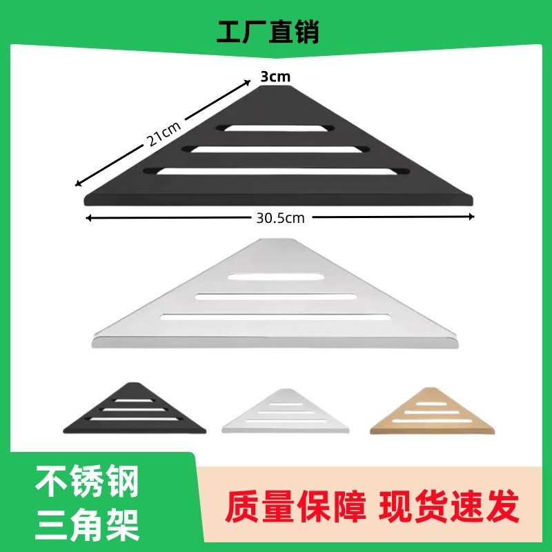 304ステンレス浴室三脚棚穴なしトイレコーナー棚壁掛け黒色収納棚