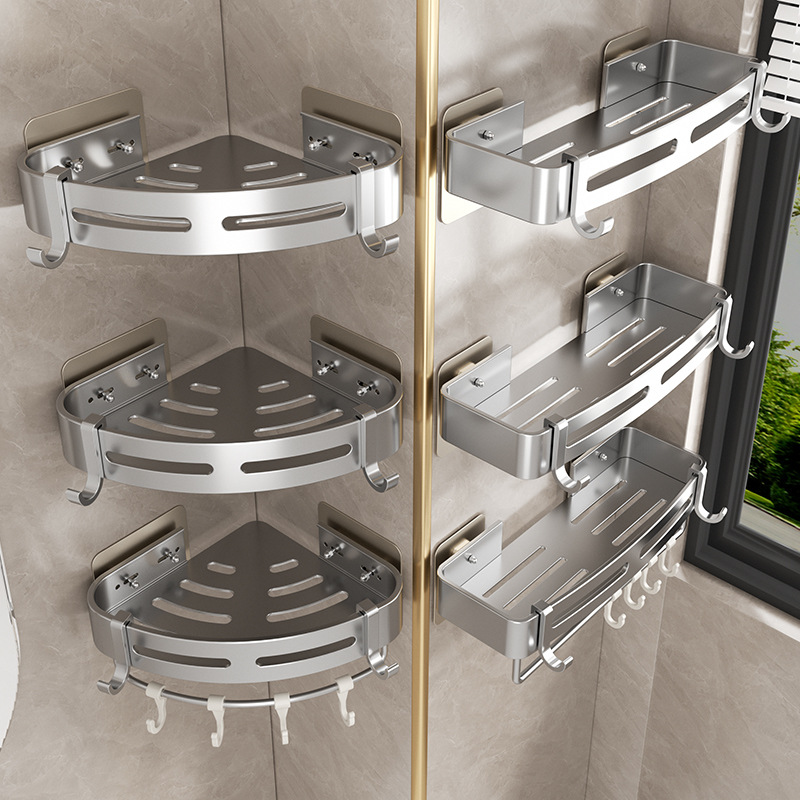銃灰浴室三角棚トイレ洗面台壁掛け収納穴なしトイレ宇宙アルミコーナーバスケット