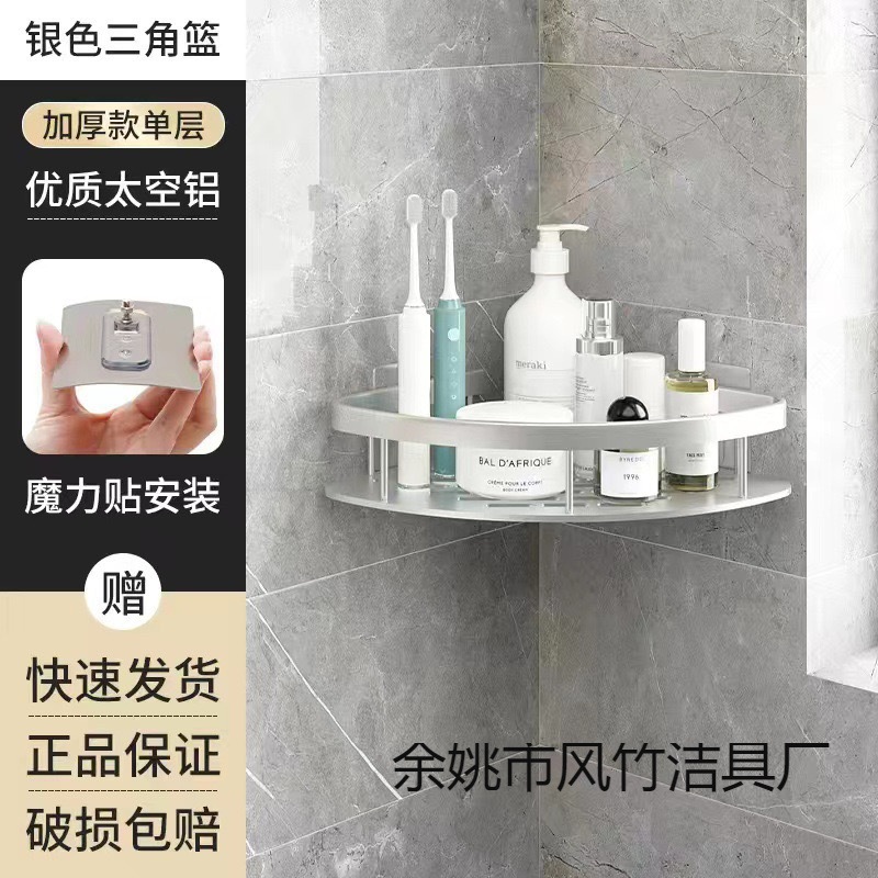 浴室穴なし三角棚トイレコーナー棚洗面台収納棚宇宙アルミ三角バスケット棚