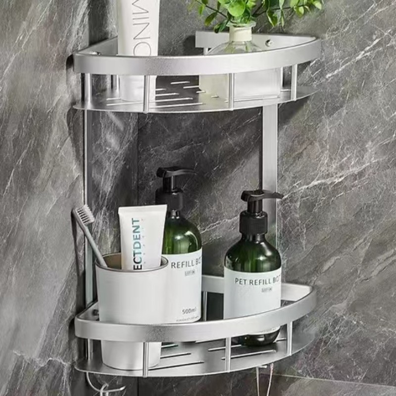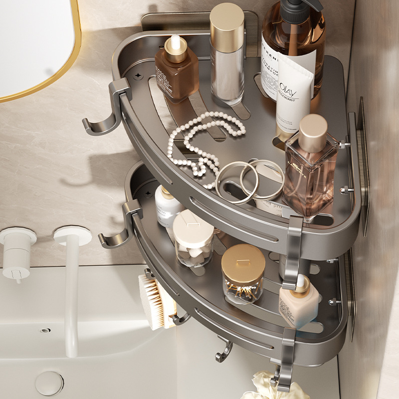 浴室三角ラック釘なしトイレスペースアルミコーナーラック壁掛け式穴なし洗面台収納棚