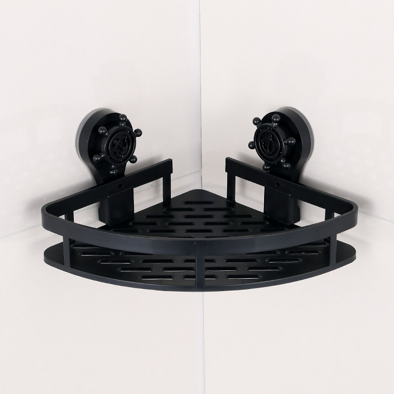 黒色の穴あけ不要三角形コーナーバスルーム収納ラック、スペースアルミニウム製トイレ用便利三角板、耐荷重10KG