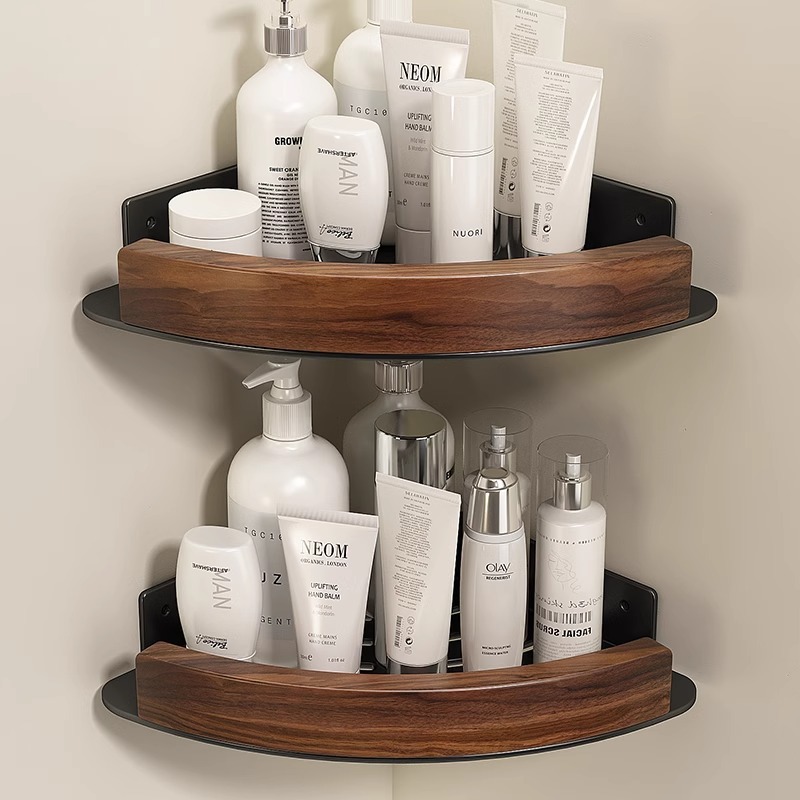 バスルームの壁の三角形の収納ラックパンチングなしウォールナットトイレ洗面台収納ラック